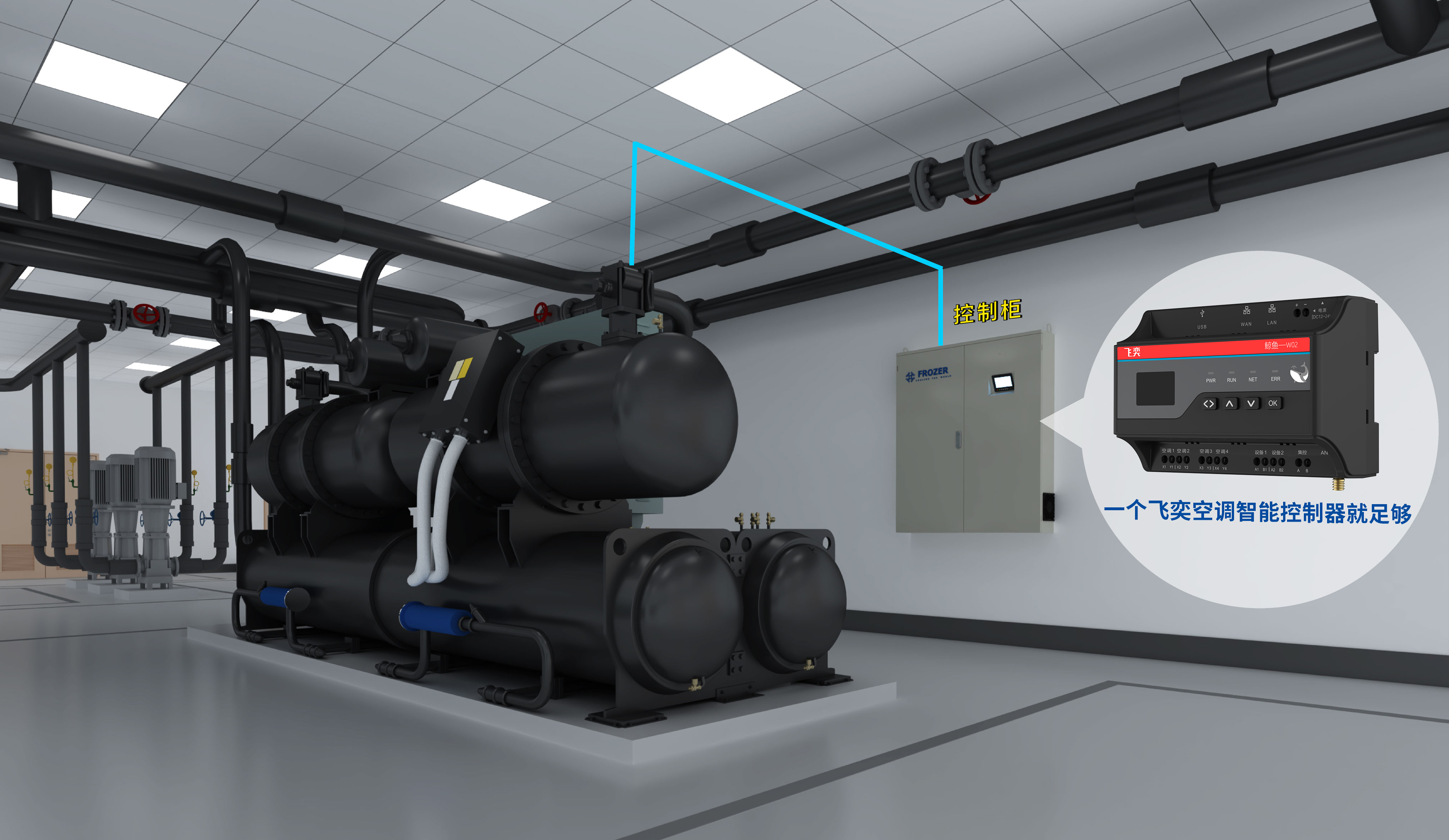 针对以上难题,飞奕开创性地推出中央空调控制一站式解决方案,其自主创新研发的中央空调智能控制器打破行业壁垒——