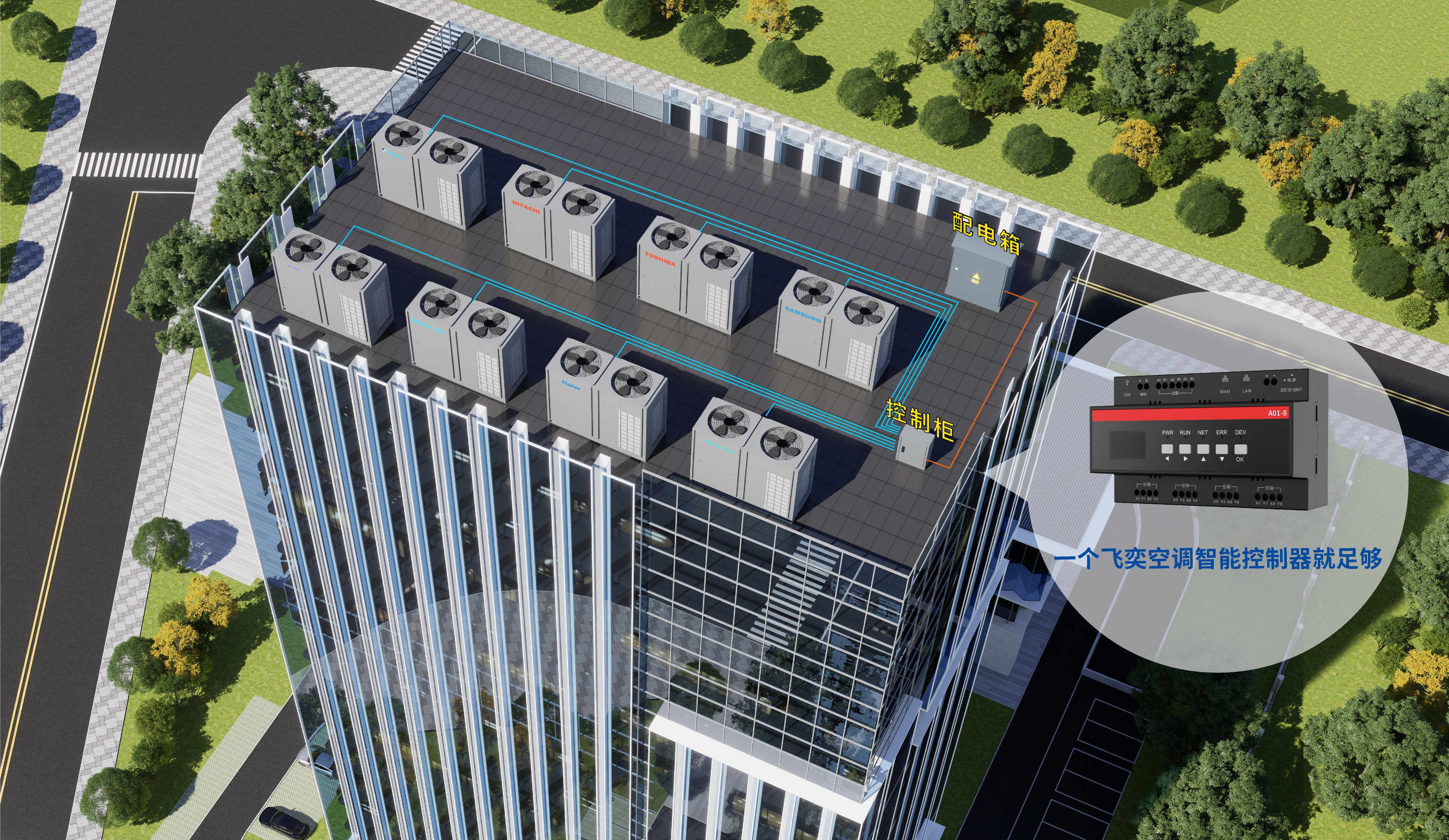 针对以上难题,飞奕开创性地推出中央空调控制一站式解决方案,其自主创新研发的中央空调智能控制器打破行业壁垒——