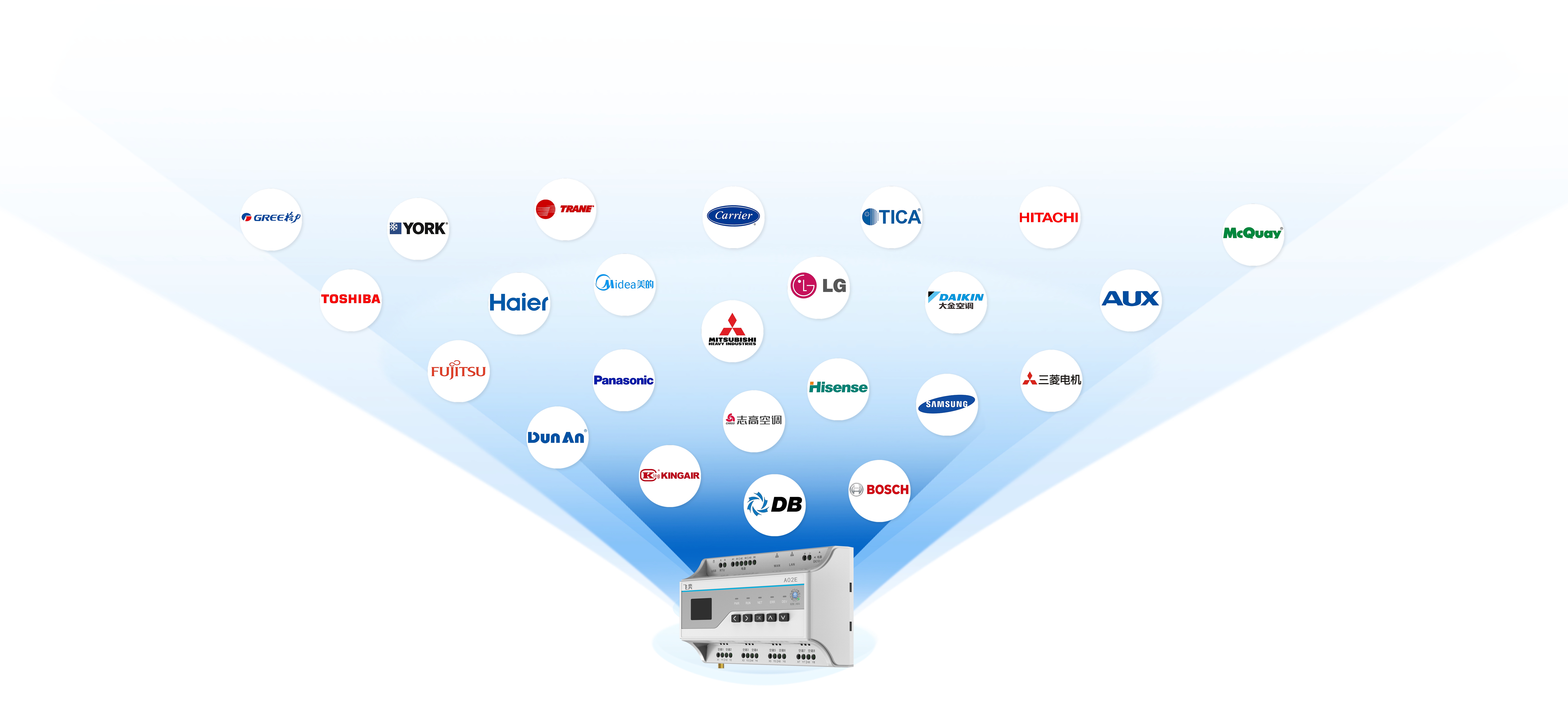 同时,飞奕针对当前市面上不同中央空调类型,分别研发出用于多联机系统、风冷热泵机组、冷水机组的A系列、W系列产品,实现更精准的现场需求。