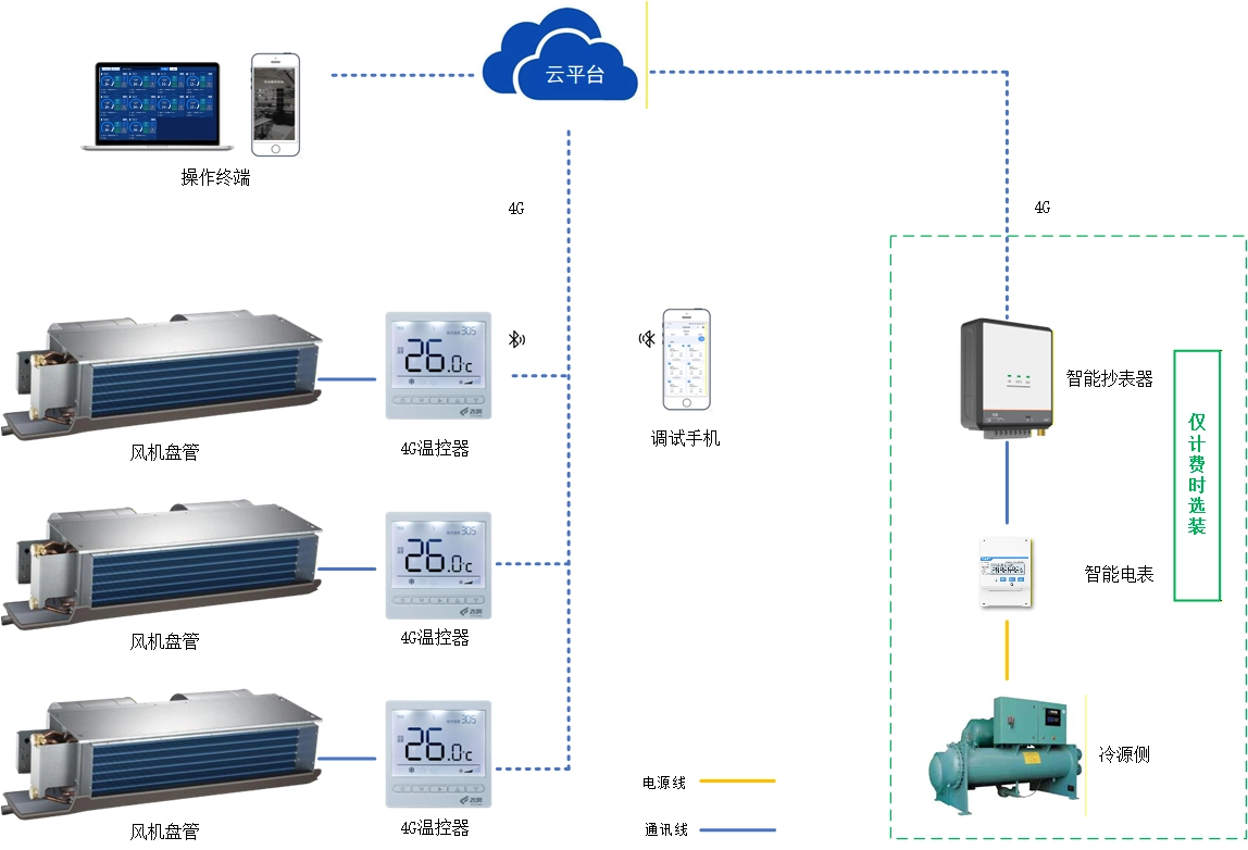 标配4G模组,实现风盘末端远程集中控制和状态监测。